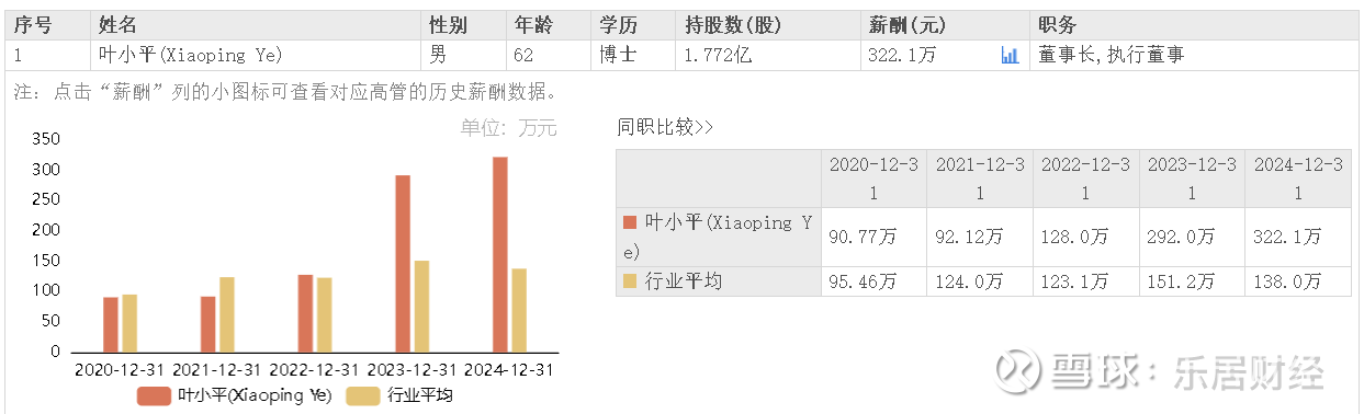 据东方财富网数据及泰格医药历年年报,泰格医药董事长叶小平(Xiaoping Ye)2019年至2024年所获薪酬分别为81.82万元、90.77万元、92.12万元、128万元、292万元和322.1万元,连续5年涨薪。