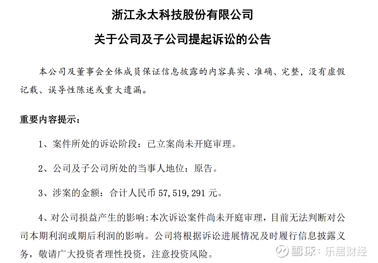 随后的7月3日,永太科技公告称,公司及子公司永太高新就天赐材料侵害名誉权行为提起诉讼,并分别索赔5751.93万元、1元。