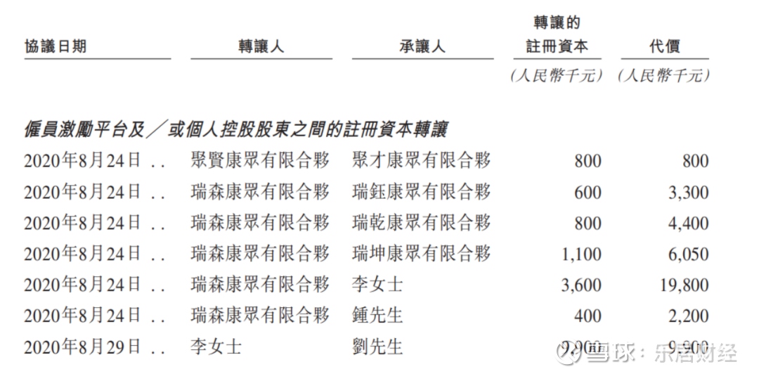 同年8月,公司部分股权在瑞森康众有限合伙、聚贤康众有限合伙、李辉、钟要齐等员工激励平台和个人控股股东之间转让。
