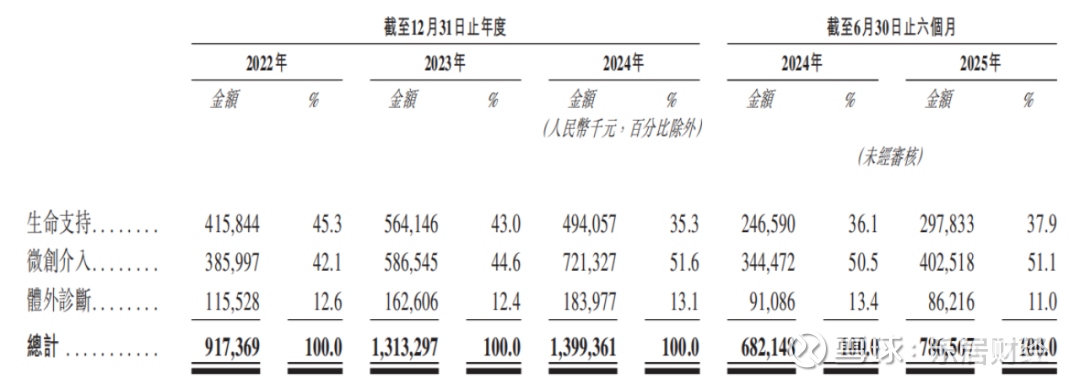 与之形成对比的,是微创介入收入占比不断提升,2025年上半年为51.1%,较2022年增长了9个百分点。麦科田表示,主要由于在国内外市场扩大客户群及产品销量增长,以及推出新产品。