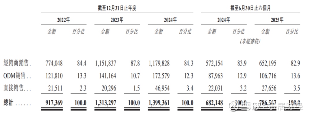 公司绝大部分产品通过经销商销售,招股书显示,期内,经销商销售占比均超过82%。