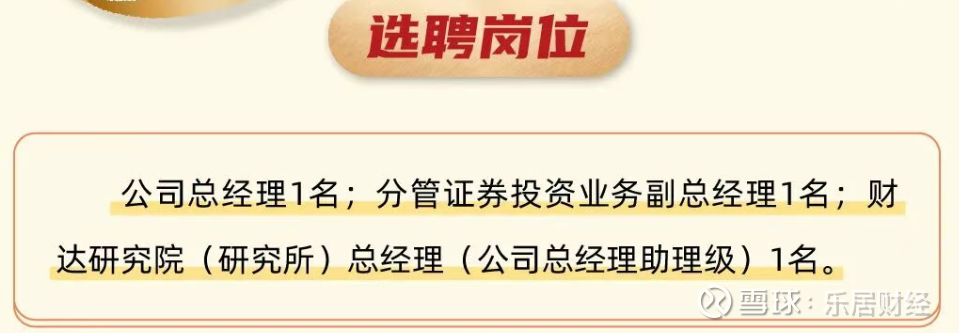瑞财经 王敏9月23日,财达证券股份有限公司(以下简称“财达证券”)在公司官方平台发布市场化选聘职业经理人公告,拟面向社会公开招聘总经理、分管证券投资业务副总经理及财达研究院(研究所)总经理三大核心岗位。