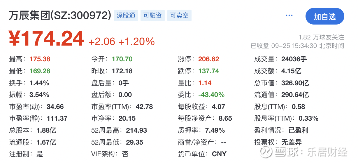 截至9月25日收盘,万辰集团报174.24元,总市值326.9亿元。若以此计算,蔡冬娜将套现479.16万元。