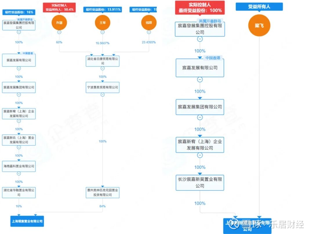 宸嘉在上海的代表作宸嘉100·嘉佰道,项目开发公司为“上海璞宸置业有限公司”,股权穿透后发现,宸嘉在这个项目上占股16%,剩余股权指向三个自然人。