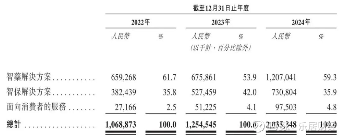 2022年-2024年,镁信健康的收入分别为10.69亿元、12.55亿元及20.35亿元,其中来自智药解决方案的收入占比分别为61.7%、53.9%、59.3%。来自智保解决方案的收入占比分别为35.8%、42.0%及35.9%。