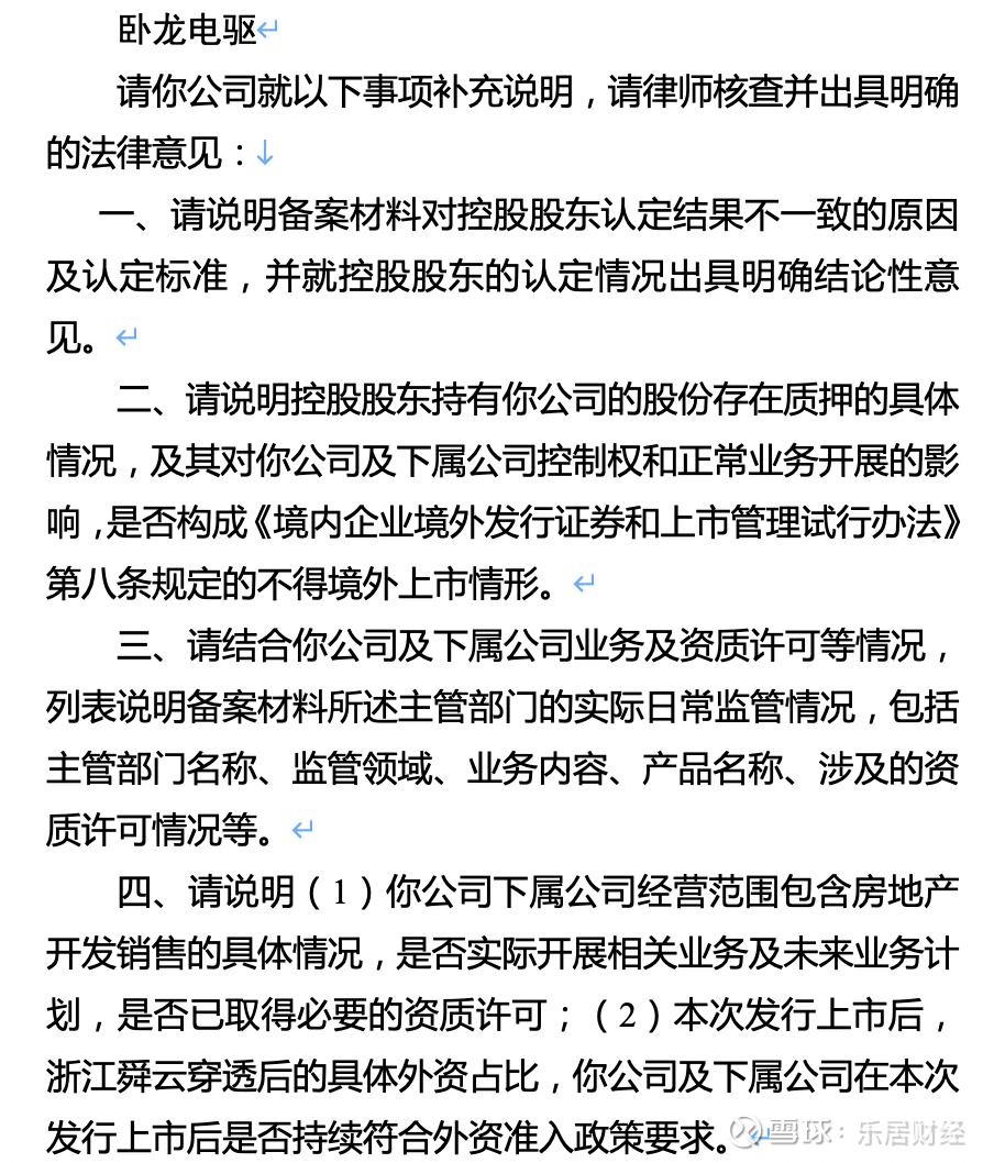 瑞财经 吴文婷 9月26日,中国证监会国际司对卧龙电气驱动集团股份有限公司(以下简称“卧龙电驱”)港股IPO出具补充材料要求。