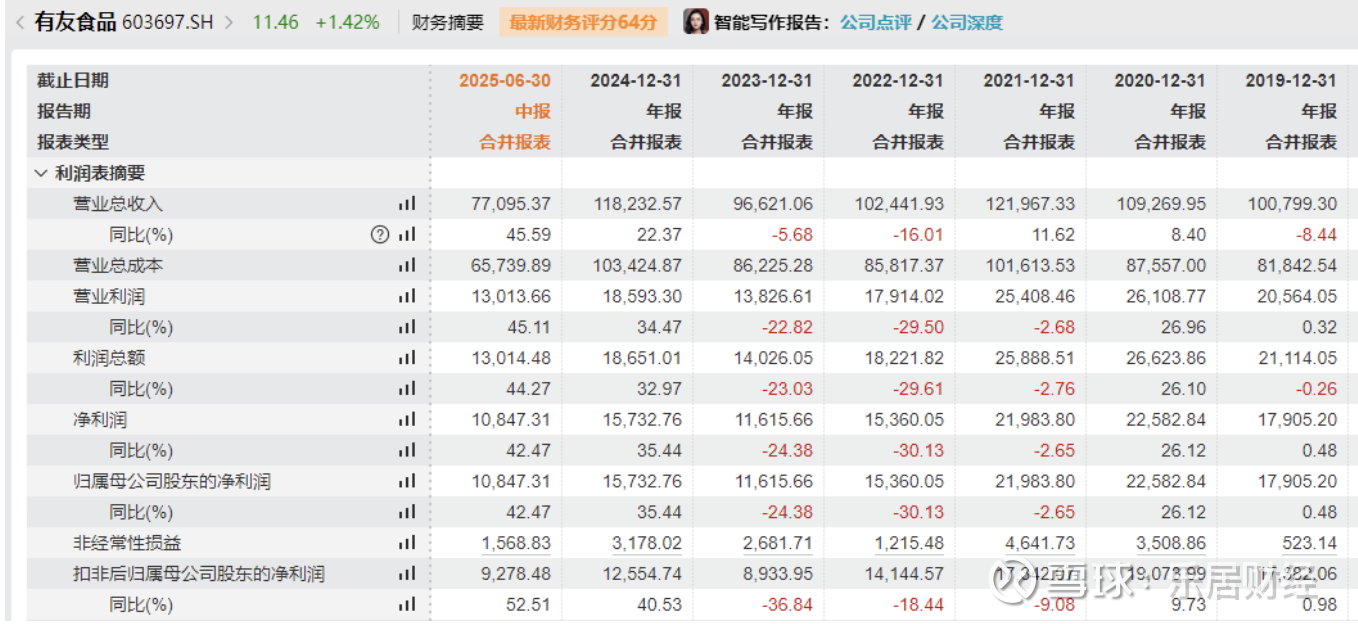 不过,这一增长瓶颈在2024年与山姆会员店达成合作后被打破。当年,公司营收同比增长22.37%至11.82亿元,扣非归母净利润大幅增长40.53%至1.26亿元。增长势头在2025年上半年得以延续,营收同比攀升45.59%至7.71亿元,扣非归母净利润同比增长52.51%至9278.48万元。