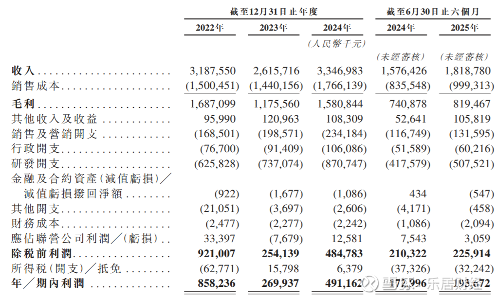 业绩方面,2022年、2023年、2024年及2025年截至6月30日止六个月(报告期内),圣邦股份实现收入分别约为31.88亿元、26.16亿元、33.47亿元及18.19亿元;同期,年/期内利润约为8.58亿元、2.7亿元、4.91亿元及1.94亿元。