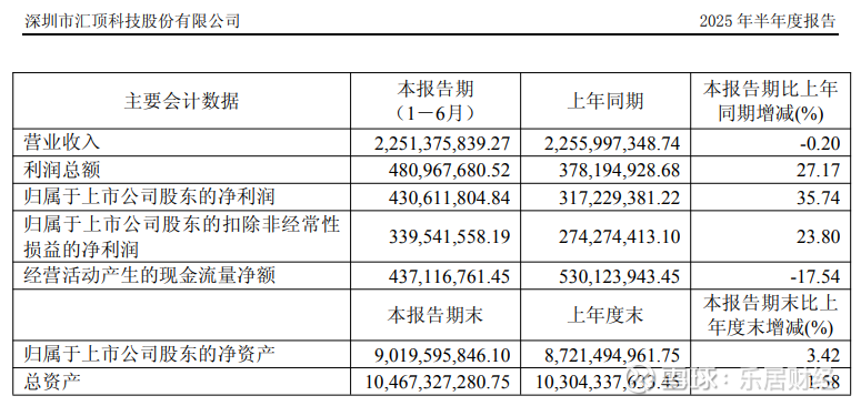 报告显示,汇顶科技公司上半年营业收入为22.51亿元,同比下降0.20%;归母净利润为4.31亿元,同比增长35.74%;扣非归母净利润为3.40亿元,同比增长23.80%;基本每股收益0.94元。