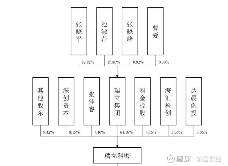 上市前,,张晓平、池淑萍通过瑞立集团控制公司64.16%的股份,张佳睿直接持有发行人7.40%的股份,张晓平、池淑萍、张佳睿合计控制公司71.56%的股份,为公司实际控制人。