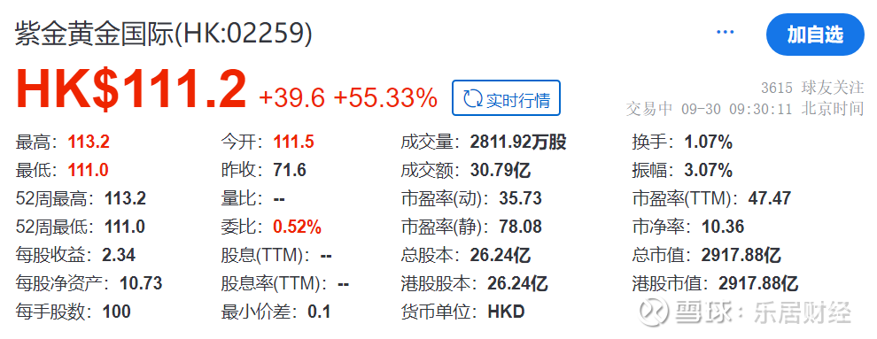 乐居财经 王敏9月30日,紫金黄金国际(HK:02259)在港交所挂牌上市,摩根士丹利、中信证券为联席保荐人,其开盘涨55%,总市值2918亿港元。