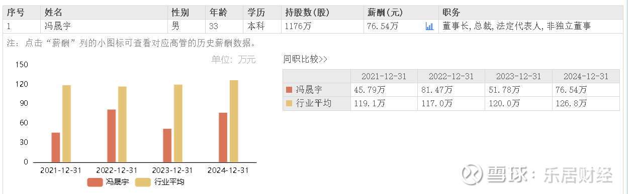 据东方财富网数据,荣晟环保董事长兼总裁冯晟宇2024年领薪76.54万元。
