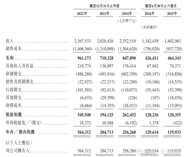 业绩方面,于2022年度、2023年度及2024年度,公司实现收入分别约为23.68亿元、20.2亿元及23.53亿元;同期,年/期内利润分别约为5.64亿元、2.05亿元及2.56亿元。