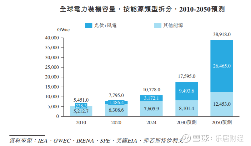 全球电力系统正经历显著增长与结构转型。全球电力总装机容量已由2020年的7,795.0GWac增至2024年的10,778.0GWac,年复合增长率达8.4%;预计2030年将达17,595.0GWac,并有望在2050年达38,918.0GWac,2024年至2030年的年复合增