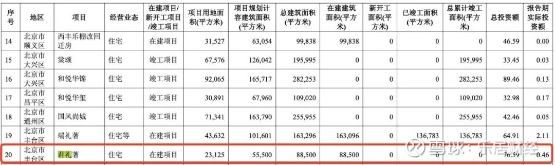 仅过一年,君礼著的总投资额就增加至76.59亿元,今年上半年实际投资0.46亿元;同期新开工面积、已竣工面积、总累计竣工面积均为0。
