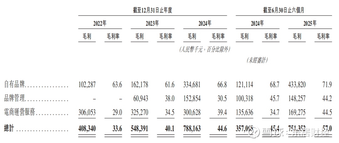 报告期各期,若羽臣自有品牌的毛利率分别为63.6%、61.6%、66.8%、71.9%,显著高于品牌管理业务和电商运营服务,为若羽臣整体利润提升做出了重要贡献。2022年-2024年,若羽臣的净利润分别为3379.1万元、5429.0万元、1.06亿元,年复合增长率达76.8%。2025年上半年,同比增长85.60%至7226.4万元,是2024年全年的68.41%。