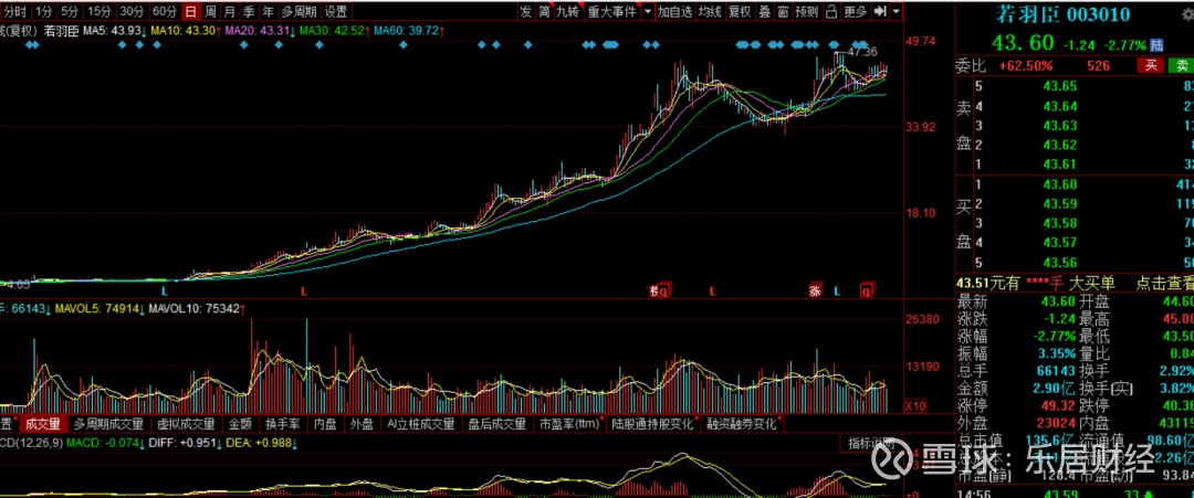 同花顺数据显示,2024年底以来,若羽臣股价持续上涨,2025年8月29日,股价达一度来到47.36元/股的高位,是2024年初3.76元/股的低位的12.60倍。