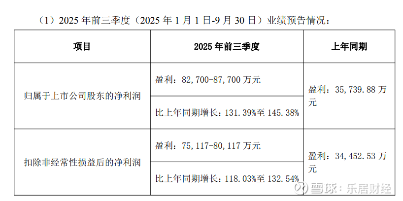 2025年前三季度,长川科技预计归属于上市公司股东的净利润盈利8.27亿元 - 8.77亿元,上年同期盈利3.57亿元,比上年同期增长131.39%至145.38%;扣除非经常性损益后的净利润盈利7.51亿元 - 8.01亿元,上年同期盈利3.45亿元,比上年同期增长118.03%至132.54%。