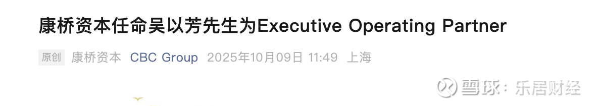 瑞财经 刘治颖10月9日,康桥资本宣布任命吴以芳为Executive Operating Partner(执行运营合伙人)。