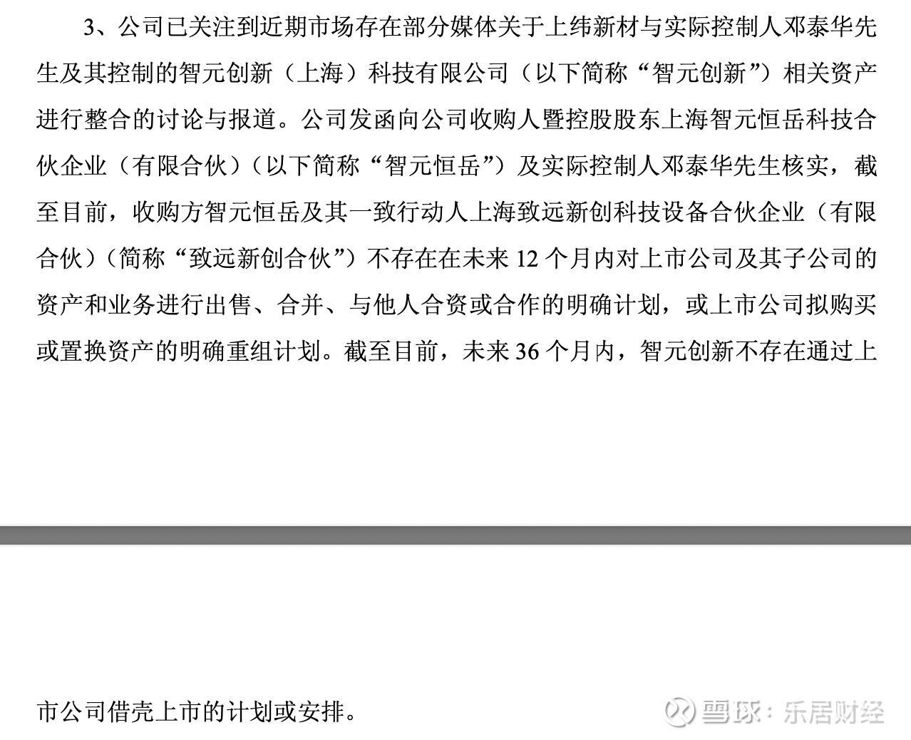 据上纬新材指出,公司已关注到近期市场存在部分媒体关于上纬新材与实际控制人邓泰华及其控制的智元创新(上海)科技有限公司(以下简称“智元创新”)相关资产进行整合的讨论与报道。