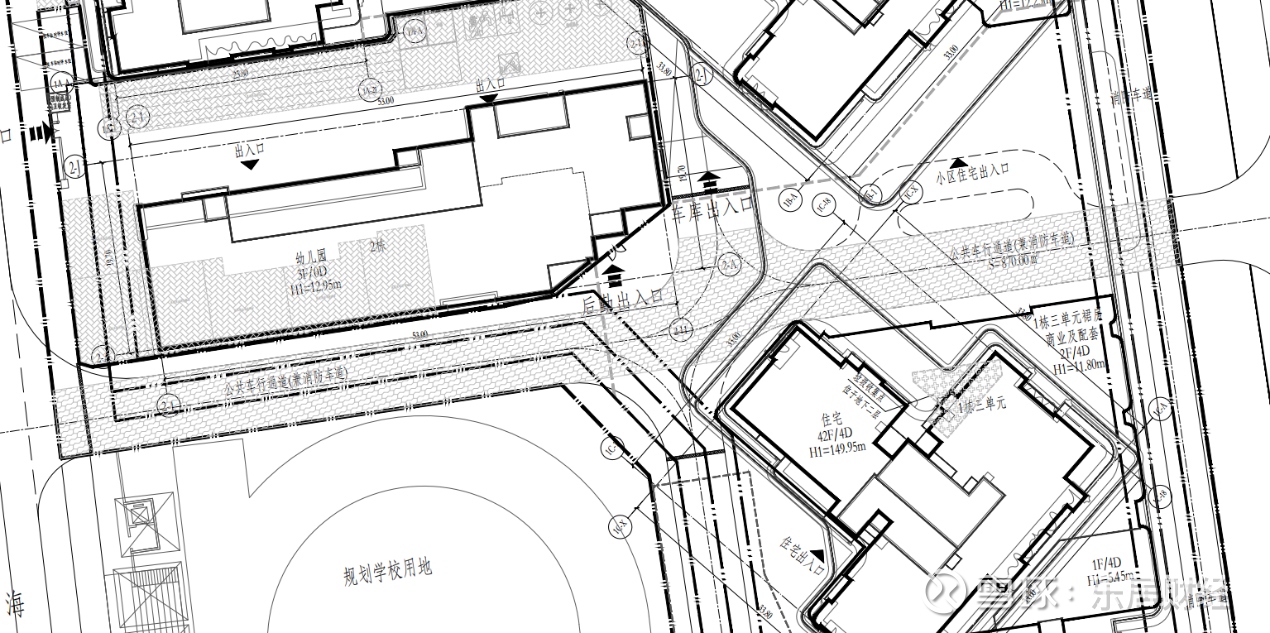 意味着被公共车行通道隔开的小区南北,应该是有连廊之类连接的。