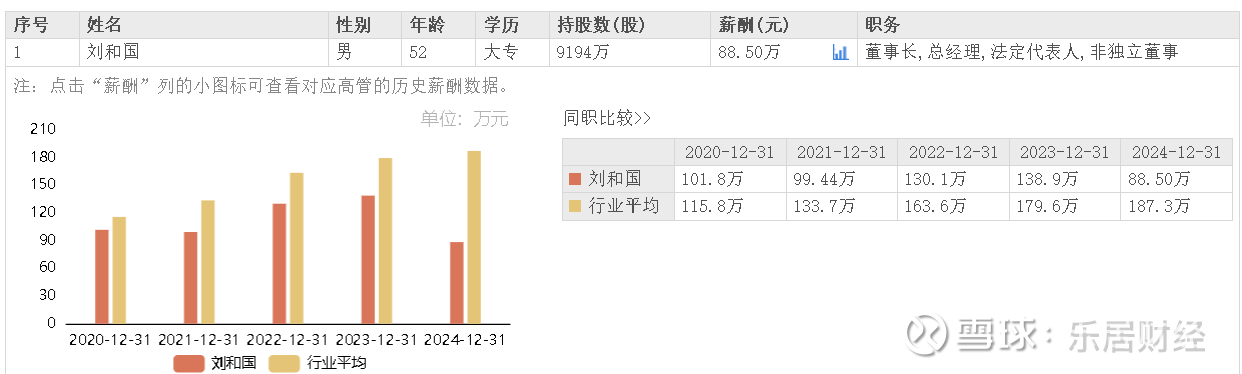 据东方财富网数据,冰川网络董事长兼总经理刘和国2024年所获薪酬为88.50万元,相较上年薪酬138.9万元降薪36.29%。