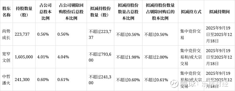 9月15日,趣睡科技公告披露了3位股东:石河子市尚势成长股权投资合伙企业(有限合伙)、成都宽窄文创产业投资集团有限公司、宁波潘火创新产业引导股权投资合伙企业(有限合伙)的减持计划。合计拟减持比例不超过约125.86万股,占总股本比例不超过3.14%