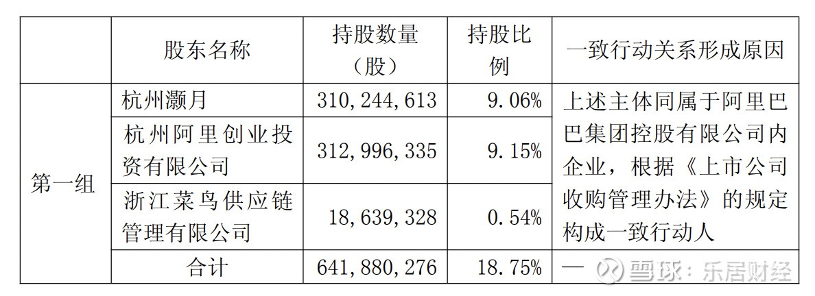 此次减持前,杭州灏月持股9.06%,杭州阿里创业投资有限公司持股9.15%,浙江菜鸟供应链管理有限公司持股0.54%,一共持股为18.75%。