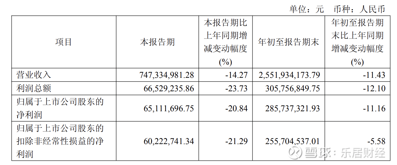 2025年前三季度,健民集团实现营业收入25.52亿元,同比下降11.43%;归母净利润2.86亿元,同比下降11.16%。其中第三季度营业收入7.47亿元,同比下降14.27%;归母净利润0.65亿元,同比下降20.84%。