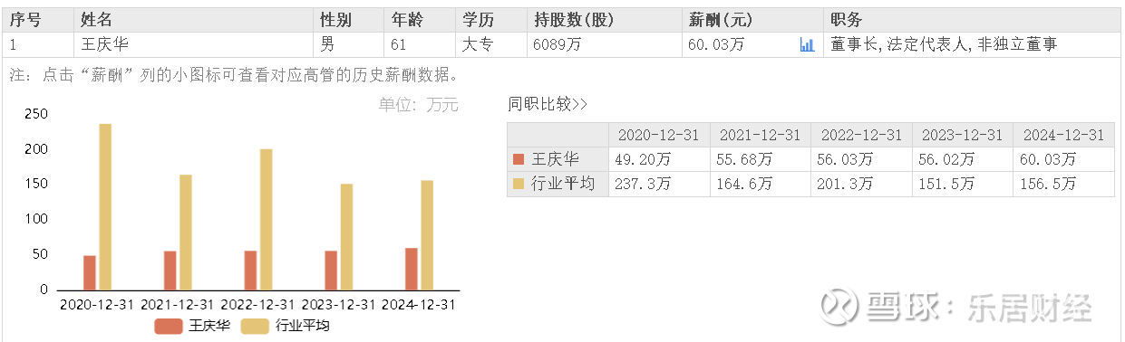 据东方财富网数据,双一科技董事长王庆华2024年所获薪酬为60.03万元,相较上年薪酬56.02万元微涨。
