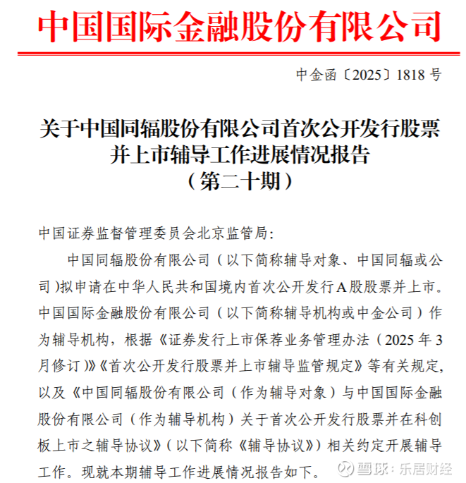 瑞财经 王敏10月23日,中国同辐股份有限公司(以下简称“中国同辐”)披露关于首次公开发行股票并上市辅导工作进展报告(第二十期),拟科创板上市,辅导机构为中金公司。