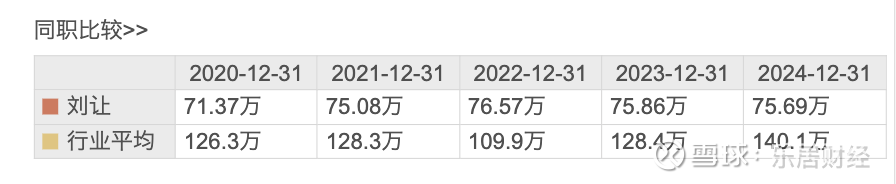东方财富数据显示,2020年至2024年,刘让薪酬分别为71.37万元、75.08万元、76.57万元、75.86万元、75.69万元。