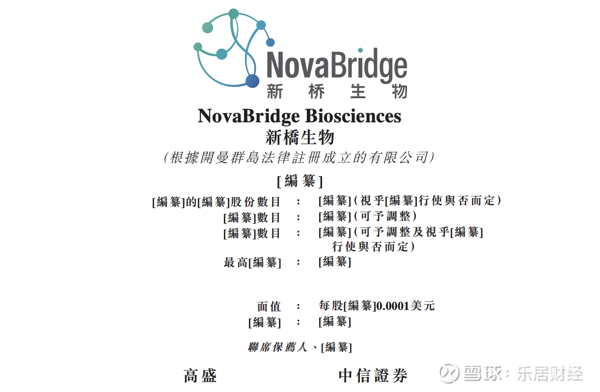 瑞财经 刘治颖10月31日,新桥生物向港交所主板提交上市申请书,高盛和中信证券为联席保荐人。