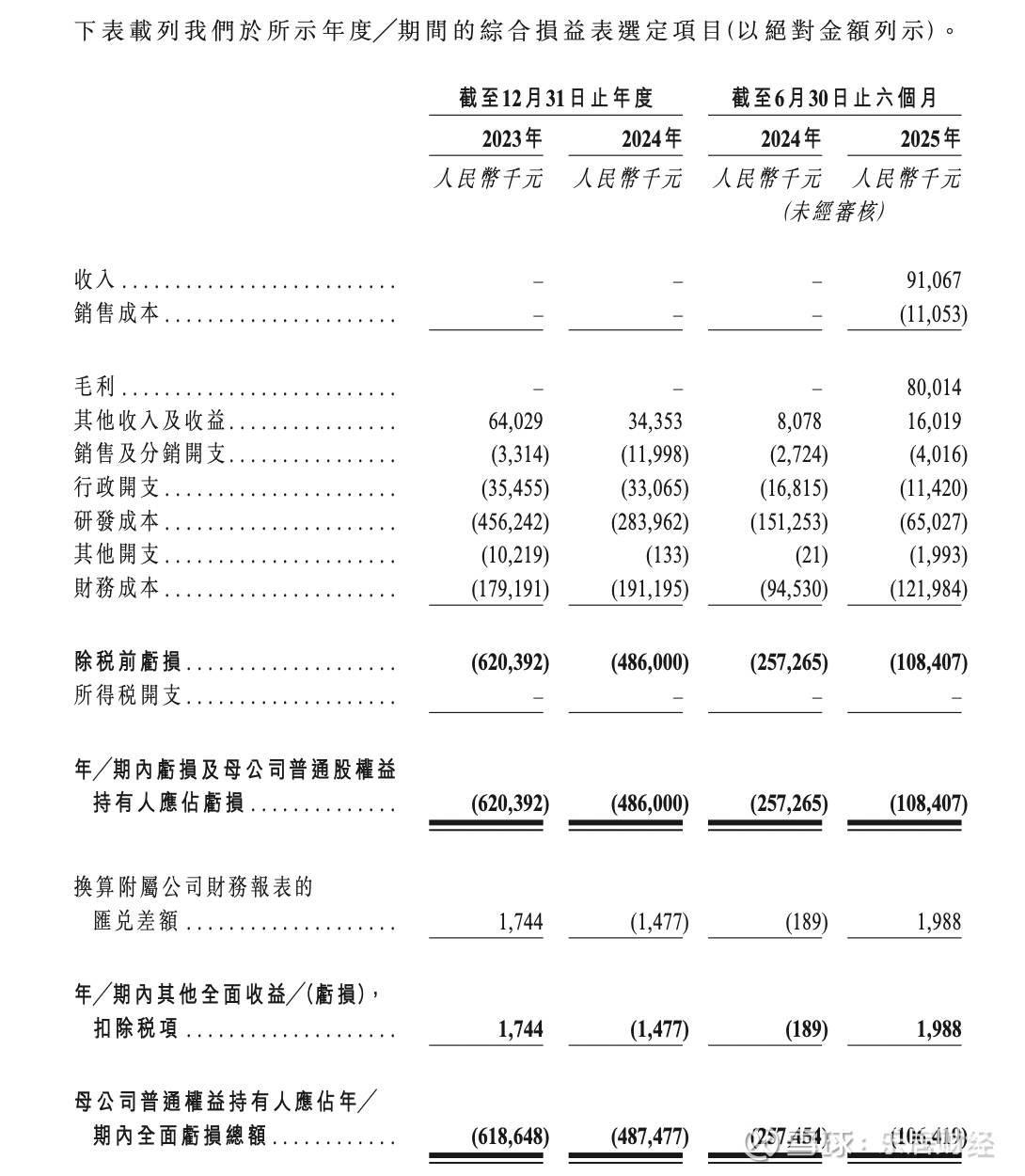 据招股书,2023年-2024年,先为达生物均无收入;年内亏损及母公司普通股权益持有人应占亏损分别为6.2亿元、4.86亿元。