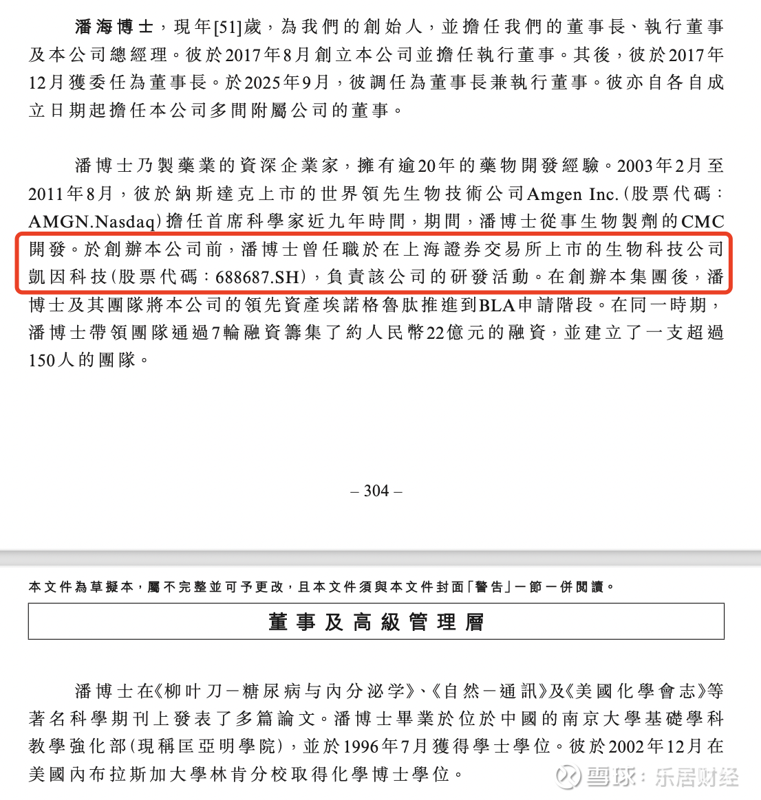 资料显示,潘海博士,现年51岁,为创始人,并担任公司董事长、执行董事及公司总经理。其于2017年8月创立公司并担任执行董事。其后,其于2017年12月获委任为董事长。于2025年9月,其调任为董事长兼执行董事。其亦自各自成立日期起担任公司多间附属公司的董事。