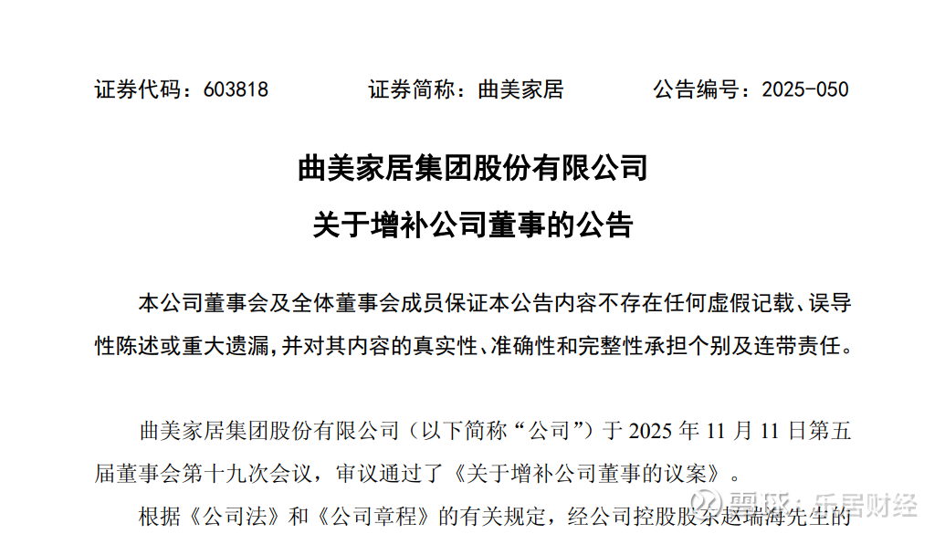 据公告披露的履历信息,两位候选人均为在曲美家居体系内长期服务、逐步成长起来的管理人才。