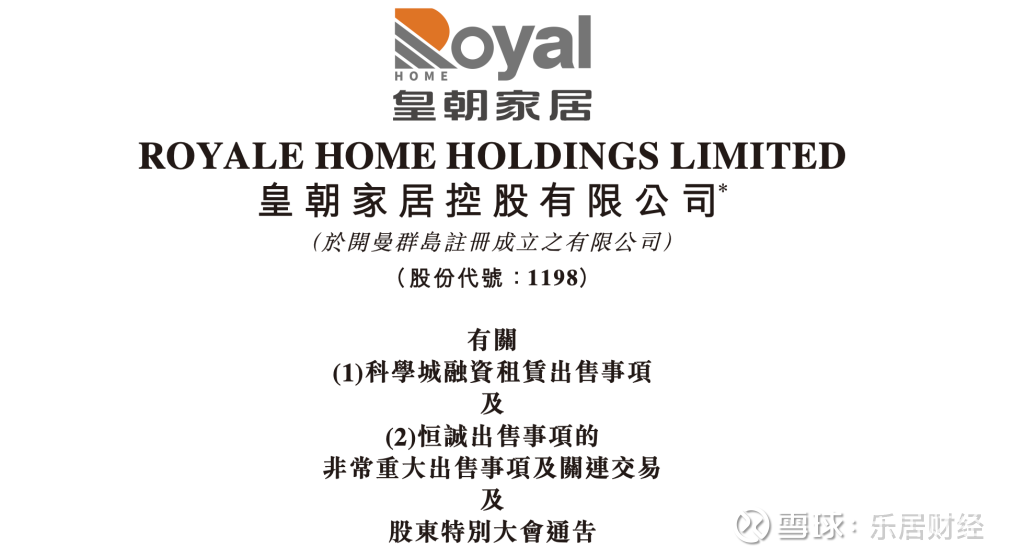 同时,皇朝家居间接全资附属公司洋思有限公司拟向科学城发展出售广东恒诚家俬有限公司(简称“恒诚家俬”)100%股权,现金代价1133.86万元。