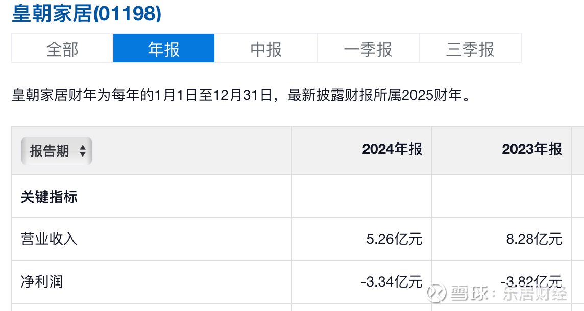 近两年,皇朝家居的动作频频,除了出售部分资产外,还高调采用了年轻代言人,以图提振业绩,但据其财报披露,2024年其收入约5.26亿元,较2023年的8.28亿元同比减少36.5%;净利润亏损3.34亿元,尽管相较2023年的亏损3.82亿元略微收窄,但仍处于亏损状态,两年合计亏损已超过7亿元。
