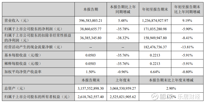 其中第三季度,秀强股份营业收入为3.97亿元,同比增长5.48%;归母净利润为3886.07万元,同比下降35.78%;扣非归母净利润为3638.53万元,同比下降38.32%;基本每股收益0.05元。