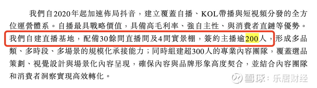 公司自建直播基地,配备30余间直播间及4间实景棚,签约主播逾200人,形成多品类、多时段、多场景的规模化承接能力;同时组建超300人的专业内容团队,覆盖选品策划、视觉设计与场景化内容呈现,确保内容与品牌形象高度契合,并结合内容团队和消费者洞察实现高效转化。