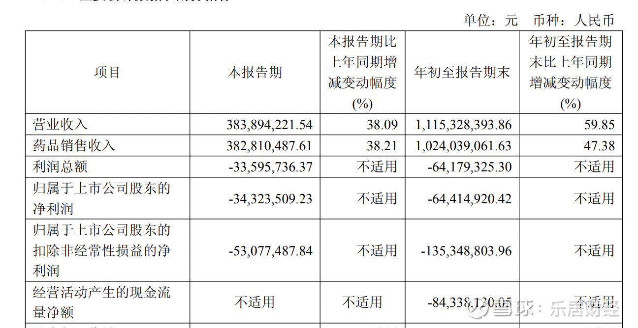 2025年7-9月,诺诚健华营业收入3.84亿元,同比增长38.09%;归属于上市公司股东的净亏损3432.35万元,上年同期亏损1356.99万元。