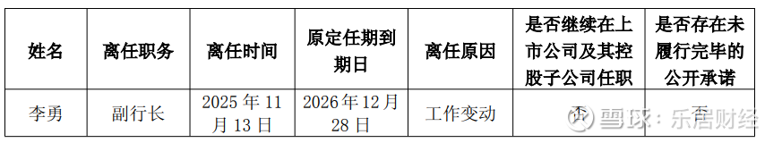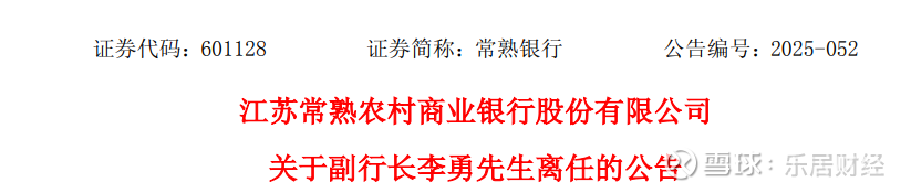 公告显示,常熟银行副行长李勇因工作变动,于当日起辞去副行长职务,辞任后不再担任常熟银行任何职务。李勇原定任期到期日为2026年12月28日,已按规定做好交接工作,不存在未履行完毕的公开承诺。