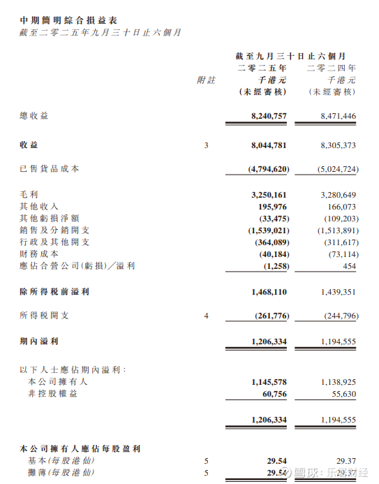 乐居财经 李兰 11月14日,敏华控股(01999.HK)发布截至2025年9月30日止六个月中期业绩,期内,集团录得营业收入约80.45亿港元,同比下降约3.1%;公司权益拥有人应占溢利在营收轻微下降情况下,反而按年微升0.6%至约14.46亿港元。
