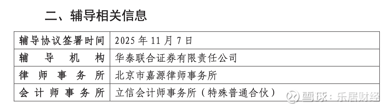 本次IPO的辅导机构为华泰联合证券有限责任公司,律师事务所为北京市嘉源律师事务所,会计师事务所为立信会计师事务(特殊普通合伙)。