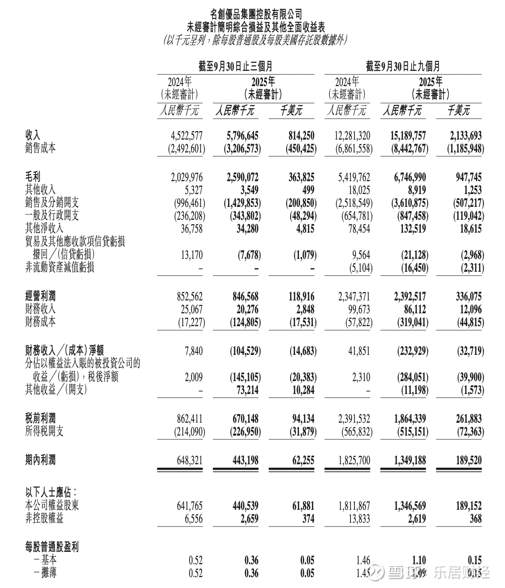瑞财经 吴文婷11月21日,名创优品发布截至2025年9月30日止三个月及九个月的未经审计财务业绩。