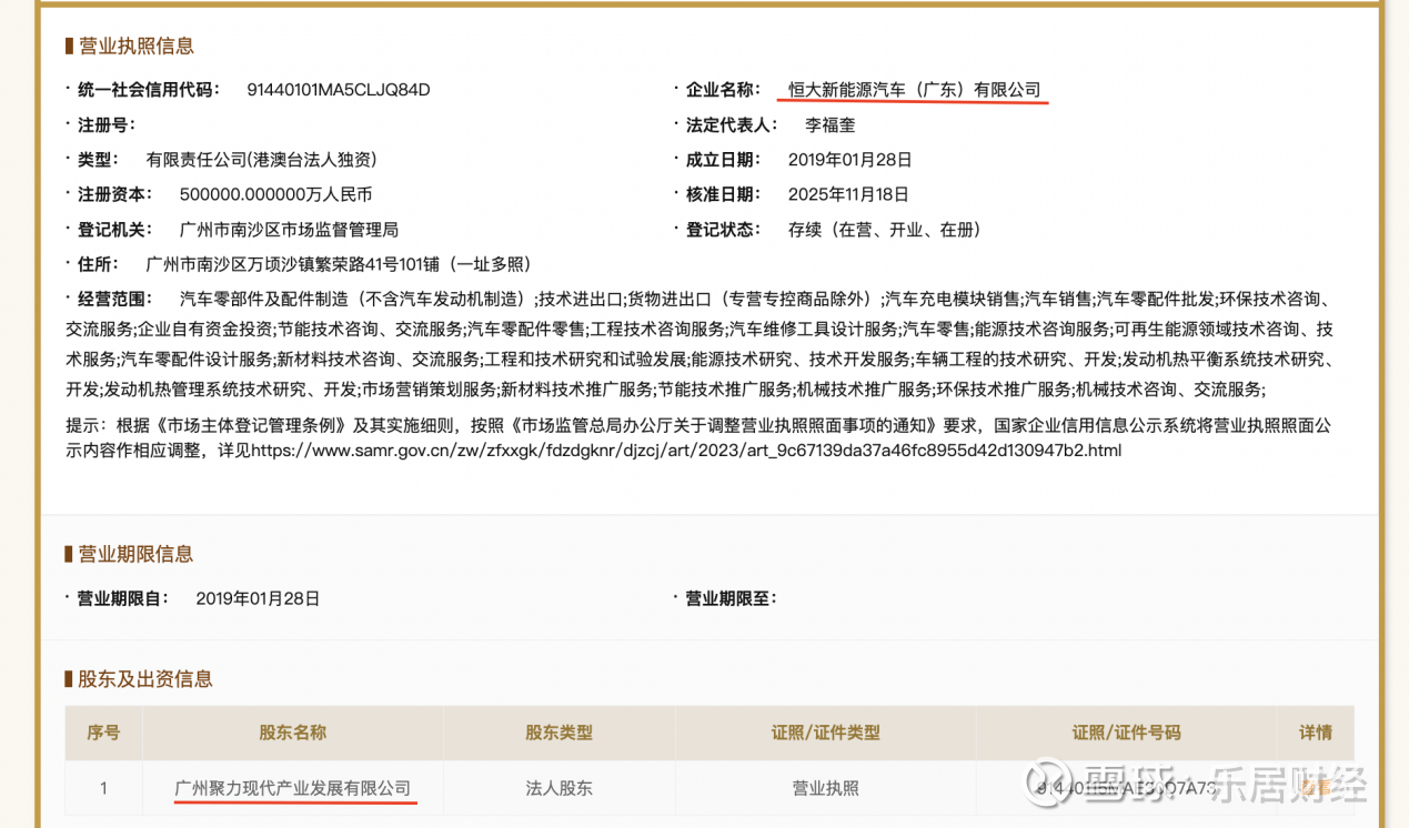 瑞财经 刘治颖国家企业信用信息系统显示,近日,恒大智能汽车(广东)有限公司、恒大新能源汽车(广东)有限公司发生工商变更,原股东恒大新能源汽车投资控股集团有限公司退出,新增广州国资旗下广州聚力现代产业发展有限公司为全资股东。