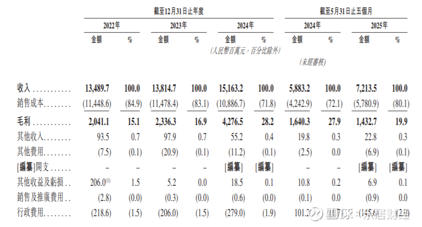 业绩方面,2022年、2023年、2024年及2025年前五个月,创新实业的营业收入分别为134.90亿、138.15亿、151.63亿和72.14亿元,相应的净利润分别为9.13亿、10.81亿、26.30和8.55亿元。