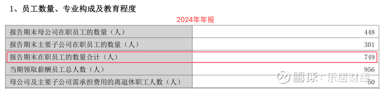 员工人数方面,2024年公司在职员工的数量合计为749人,较上年的821人减员72人,减员比例近9%。