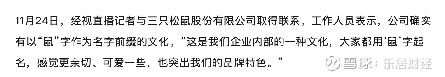 瑞财经 吴文婷 11月24日,据媒体报道,三只松鼠工作人员回应员工入职要改成“鼠”姓。
