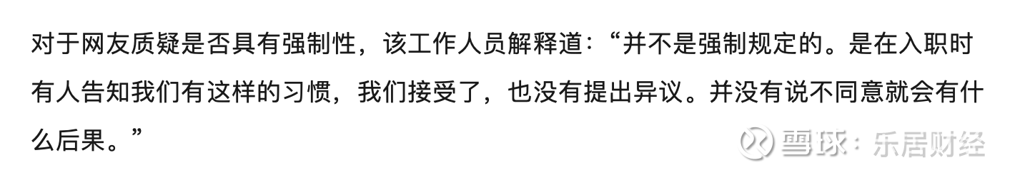 不过,该工作人员解释道:“并不是强制规定的。是在入职时有人告知我们有这样的习惯,我们接受了,也没有提出异议。并没有说不同意就会有什么后果。”
